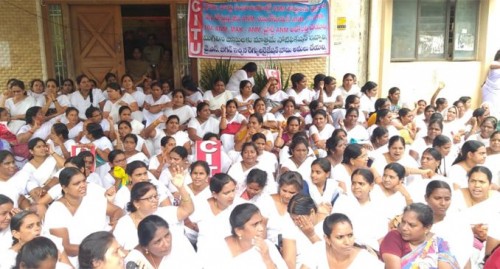 వైద్య ఆరోగ్య శాఖ కార్యాలయం వద్ద ఏఎన్ఎంల ధర్నా