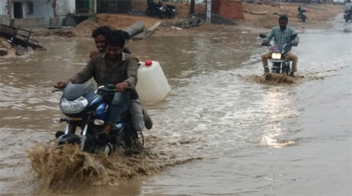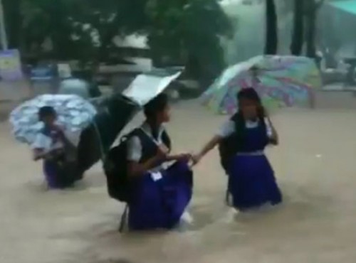 నీళ్లలో నుంచే స్కూళ్లకు వెళుతున్న విద్యార్థులు